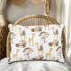Vorstellung unserer Jungle Safari mit Giraffes Kinderzimmer Pattern Kissen! Dieses Design zeigt eine niedliche Darstellung von Giraffen, exotischen Bäumen und Safariautos.