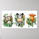 JUNGLE SAFARI MONKEY, ZEBRA & GIRAFFE ART POSTER