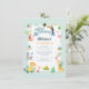 Niedliche Einladung zum ersten Geburtstag mit Dschungelsafari-Tieren, Sträuchern, exotischen Vögeln und Ballons in modernen und trendigen Farben. Einige der illustrierten Tiere sind ein Affe, Giraffe, Löwe und Zebra. Fügen Sie einfach die Party-Details hinzu, indem Sie auf "Personalisieren" klicken