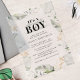 Wilde, ruhige und elegante Jungs Safari Baby Dusche Einladung mit einer Giraffe, Goldeffekt und grünen Blätter. Ideal für Jungen mit Baby-Dusche