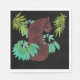 Brauner Tigerkunstvektor zeichnend, tropische Blätter, eigene Hintergrundfarbe.