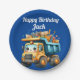 Dieser personalisierte Name Happy Birthday Papierteller hat einen Dump Truck für Ihren kleinen Typ