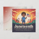 Feiern Sie den 19. Jubiläum mit dieser fröhlichen Karte mit einem lächelnden Jungen und festlichen Elementen zum Thema Freiheit. Ein perfekter Weg, Geschichte, Erbe und Hoffnung zu ehren.