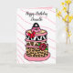 Niedlicher Cartoon handgezeichnete Dschungelmotive Geburtstagskuchen, Zebradruck, Leopard und Giraffenrosa, schwarz, rot und weiß Rose und Bögen mit einer personalisierten Geburtstagskarte.