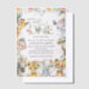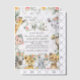 Mit dieser charmanten Babydusche laden Sie Freunde und Familie in Stil und Set zu einem erlebnisreichen Tag ein. Das Design umfasst Dschungeltiere (Giraffe, Affe, Zebra, Löwe, Elefant, Gepard, Meerkat, Rhino), Hibiskus-Blume und Eukalyptus-Blätter auf weißem Hintergrund.