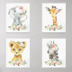 Fügen Sie mit diesen wunderschönen Kunstdrucken die Touchs in das Kinderzimmer oder Kinderzimmer Ihres Babys ein! Das Design umfasst Dschungeltiere (Löwe, Giraffe, Elefant, Zebra), rosa Aquarellfarben und Blume.