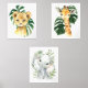 Fügen Sie mit diesen wunderschönen Kunstdrucken die Touchs in das Kinderzimmer oder Kinderzimmer Ihres Babys ein! Das Design umfasst Dschungeltiere (Löwe, Giraffe, Elefant) und Grünpflanzen.