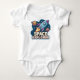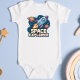 Dieser Baby Bodysuit zeichnet sich durch ein kühnes und lebendiges Abzeichen für Weltraumforscher aus. Eine spielerische Cartoon-Rakete stürzt durch den Raum, mit Planeten um sie herum.