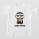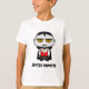 Niedlicher Cartoon Baby Vampir mit großen gelben Katzenaugen, gekleidet in einer schimmernden roten Weste und schwarzem Kap. Für diesen kleinen Typ ist der Alltag Halloween!