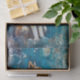 Ein majestätischer Wolf über einem bedrückten blauen Hintergrund. Verwendung für Geschenkverpackungen oder für Papierhandwerksprojekte.