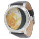 Uhr, Klassische Damenuhr mit schwarzen Lederarmband