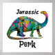 Jurassic Perk Farbiger Dinosaurier Weiß Poster
