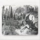 Jurassic Pterodactyls klassische Illustration von prähistorischen Jurassischen Pterodaktyls Fliegen und auf dem Land sowie einer tropischen Landschaft mit Palmen. Kupferstil Schwarz-Weiß-Illustration.