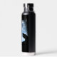 Ein Allosaurus-Dinosaurier blickt auf einen strahlend blauen Himmel, wie ein Pterosaurier oben fliegt.