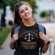 Dieser Abschluss der Schwarzen Jura- weiblichen T - Shirt bietet orange Typografie für eine Klasse von 2024 Absolvent. Stellen Sie sich mit Ihrem geschlossen Jahr unter den Maßstäben der Gerechtigkeit für einen großen personalisierten Gedenkanwalt Abschlag für ihre Uni oder Universität.