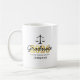 Tasse für Abschluss der Custom Law School mit den Maßstäben der Gerechtigkeit, 2023 in Imitaten Goldfolie, Schulname, Schülername, und das Wort Absolvent in einem Skript-Schriftart.