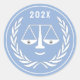 Kreative Geschenksticker, Umschlag Aufkleber oder Absolventen bevorzugen Labels mit lustigen, auf hellblauem Hintergrund personifizierten Maßstäben für Gerechtigkeit. So passen Sie Text an.