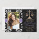 Fügen Sie Ihr Foto- oder Lieblingsbild diesen eleganten und formalen Schwarzweiss-BlumenAbschlussmitteilungen und -einladungen der juristischen Fakultät des damastes mit Goldskalen des Gerechtigkeitsentwurfs und des lila genähten Bandblickdruckentwurfs hinzu. Fertigen Sie ihn besonders an, um zu sagen, was auch immer Sie auf dem hinteren und das vorder von den Rechtsanwaltabsolvent-Abschlussmitteilungen und -einladungen wollen. Grafik © Chrissy H. Studios, LLC. Alle Rechte vorbehalten.