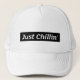 Behalt es cool - buchstäblich und bildlich - mit diesem verlassenen **"Just Chillin"** LKW-Hut. Mit **weißer Schrift in schwarz**, ist diese atemberaubende Mesh-Back-Kappe perfekt für sonnige Tage, lässige Hänge oder zum Abschneiden Ihres kältesten Aussehens. Egal ob Sie am Strand oder nur auf einer Couch fahren, dieser Hut sagt alles aus - Sie müssen also nicht. Entworfen für höchsten Komfort und Alltag cool. #JustChillin #TruckerHatStyle #CoolCapVibes #ChillModeOn #CasualLooks #typographyCap #BoldAndRelaxed #HeadwearWithAttitude #MeshBackVibes #StreetStyleCool
