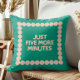 Throw pillow with bold and playful Just Five More Minutes text. Perfect for dorm rooms and apartment bedrooms of anyone who likes to hit the snooze button.
