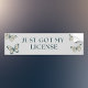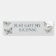 Celebrate a proud driving milestone with this elegant bumper sticker featuring delicate vintage butterflies on a soft gray backdrop. Designed with new drivers in mind, the minimalist layout and calming colors make a gentle statement on the road. The classic serif text reads Just Got My License, letting others know you're just getting started. Perfect for teens and first-time drivers who want something pretty yet practical. A charming and durable addition to any vehicle.