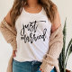 Set auf die Flitterwochen mit unserem super niedlichen Brauttank mit "Just Married" vorne in schwarz handgeschriebenem Pinselmarkierungstyp. Personalisieren Sie den Rücken mit Ihrer Textauswahl - wir Liebe ihn mit "The New Mrs." und Ihrem neuen Nachnamen.