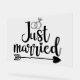 Just Married Set dieses Schild auf einem Tisch, um Ihre Hochzeitsgäste willkommen zu heißen, hängen an einer Mauer und dann für sich als ein Moment Ihrer Hochzeit behalten.