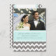 Heiratserklärung Foto Postkarten in elegantem, türkisfarbenem Himmel blau, grau und weiß lässig und Retro Zickzack Zickzackstreifen Streifen Muster, individuell mit Ihren Namen, Hochzeitsfeier Foto und Hochzeitsdetails, die perfekte Art, Ihre Hochzeit zu verkünden, Freunde und Familie. Erhältlich in einer breiten Palette von passenden Hochzeitsprodukten.