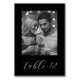 Diese minimalistischen Tischnummern haben ein klassisches Schwarz-Weiß-Foto des fröhlichen Paares in der Mitte, mit dem eleganten weißen Schriftzeichen direkt darunter. Um den Text zu bearbeiten und das Foto zu ändern, klicken Sie auf die Schaltfläche Personalisieren.