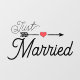 Nur verheiratet - Fensterklemme. Eleganter Script-Schriftart mit einer roten Abbildung des Herzpfeils. Einfache und süße schwarze Schrift. Bestellen Sie eine für die Hintertür Ihres Autos und lass der Welt wissen, dass Sie gerade verheiratet got!