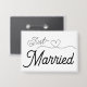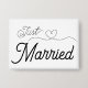 Just Married - lustige Hochzeitsknöpfe und Flitterwochen (Buttone) für Braut und Bräutigam. Melden Sie Ihren Status als Neuvermählte an. Eleganter Script-Schriftart mit einer niedlichen Herzerkrankung. Einfache und süße schwarze Schrift.