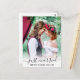 Moderne trendige Kalligrafie nur verheiratet Hochzeitsfeier Foto Ankündigung Postkarte