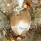 Gerade verheiratet, unsere erste Weihnachtszeit als Mr. und Mrs. Wedding Foto bewahren Weihnachtsschmuck.