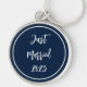 Schlüsselanhänger wird in einem auffallenden Marineblau mit weißer Kombination gezeigt, einem klassischen Sake für das Paar. Navy Blue Hintergrund mit weißem, elegantem Skript. Passen Sie dieses Objekt an, indem Sie ein eigenes Datum hinzufügen, usw.