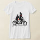 Nur heiraten! Eine frisch verheiratete Braut in ihrem Hochzeitsschleier und Bräutigam in seinem Hut und Krawatte reiten ein Fahrrad für zwei.