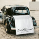 A custom "Just Married" and wedding text fabric car banner sign perfect for your wedding. This "Just Married" car banner sign used script calligraphy script perfect for any wedding. Use the words "Just Married" or customize them to suit your wedding. Order the size based on your vehicle.