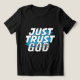 This modern black tee delivers a clear, powerful command: "JUST TRUST GOD". The distressed block text in white and blue, contrasted with a blue paint splash, creates a dynamic, urban look. It's a straight-forward expression of faith, confidence, and reliance on the Divine.