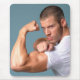 Vier-FarbeFoto auf mousepad des Bodybuilders und der Fitness vorbildlicher Justin Woltering, der sein Bizeps biegt.