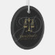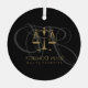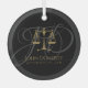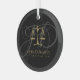 Berufliches Ornament mit der Waage des Justizzeichens und der Text auf schwarzem Hintergrund. Passen Sie es an.