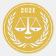 Creative Juristensticker, Umschlag Aufkleber oder Graduiertengruppe bevorzugen Labels mit lustigen, auf goldenem Hintergrund personifizierten Maßstäben für Gerechtigkeit. So passen Sie Text an.
