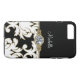Damen- oder Mädchenmonogramm smartphone Fall in Schwarz-weißem und Gold einschließlich das Diamantjuwel und Blumendamastmuster, alle digital gedruckt, um wie ein extravaganter schillernder Cellphonekasten mit Charakter auszusehen und Art.