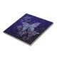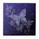 Eleganter und stilvoller Schmetterlingsentwurf: mit Blumen wie Wirbel und ein Schmetterling mit Seide ähnlichen Flügeln in den Schatten von Blauem und von Flieder, verziert mit glänzenden Juwelen, Set auf einem Hintergrund des dunkelblauen Damastes.