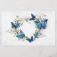 Goldenes, schmuckiges Herz mit blauen und weißen, realistischen Schmetterlingen Morpho. Morpho. Design mit blauen Schmetterlingen Morpho.