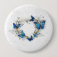 Goldenes, schmuckiges Herz mit blauen und weißen, realistischen Schmetterlingen Morpho. Morpho. Design mit blauen Schmetterlingen Morpho.