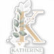 Letter K monogramm floral. Letter K in goldbrauner Textur mit grünen Aquarellfarben Blätter und Beeren und geschmolzenen Goldspritzen. Personalisiert mit Namen in passendem Schriftart.