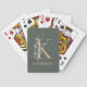 Letter K monogramm floral. Letter K in goldbrauner Textur mit grünen Aquarellfarben Blätter und Beeren und Goldstaub. Personalisiert mit Namen in passendem Schriftart. Set auf dunklem Mineralgrün.