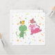 vierkante wenskaart voor kinderen met twee poezen, met vogeltjes op hun hoofd en tekst: fijne verjaardag! Tekst kan aangepast worden.