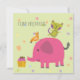 felicitatie met illustratie van olifantje met poes vogeltje en cupcake