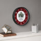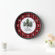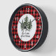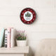 Dieses Design hat eine rustikale Atmosphäre. Der Hintergrund ist ein rotes und schwarzes Karo. In der Mitte gibt es einen weißen Kreis mit drei immergrünen Bäumen. Die Zahlen auf diesem Design sind weiß. Diese Uhr würde gut aussehen in einer Zuhause, in den oder sogar in einem Büro. Text kann angepasst werden. Die hölzernen Uhren sind in drei Farben erhältlich.