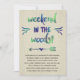 Diese niedliche, rustikal-schicke Einladung zu einem "Glamping"-Junggeselinnen-Abschied in einer Kabine verfügt über eine hübsche Pinselskriptkalligrafie, die lautet "Weekend im Wald!" mit einem grünen, blauen und lila Wasserfarbeneffekt. Das Design umfasst auch ein Herz und einen Pfeil, hübsche Schnörkel und eine Holzstruktur.